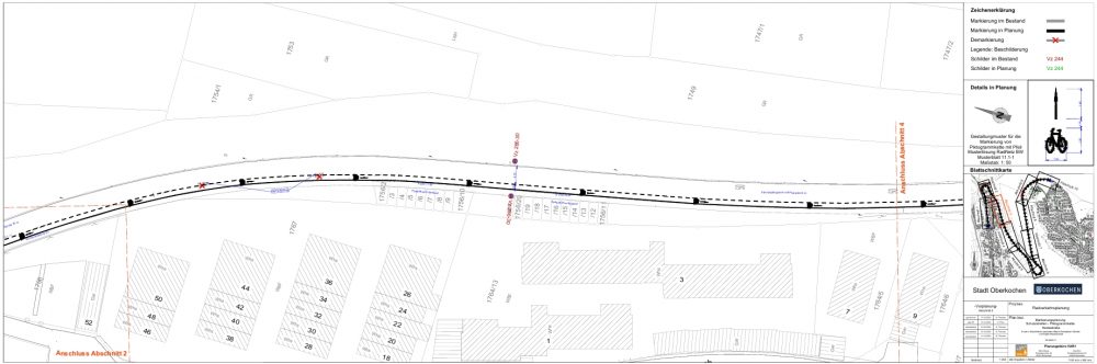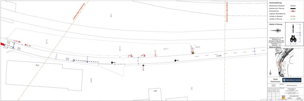 Für die Stadt Oberkochen erstellte VAR+ 2023 ein Radverkehrskonzept mit 128 Maßnahmenvorschlägen. VAR+ unterstützt die Stadt Oberkochen bei der Realisierung der vorgeschlagenen Maßnahmen durch die Erstellung von CAD-Plänen.